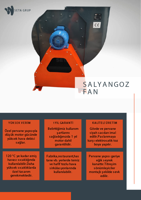 Dayanıklı Gövde: Gövde ve pervane siyah saçtan üretilmiş olup, paslanmaya karşı elektrostatik toz boya ile kaplanmıştır.
